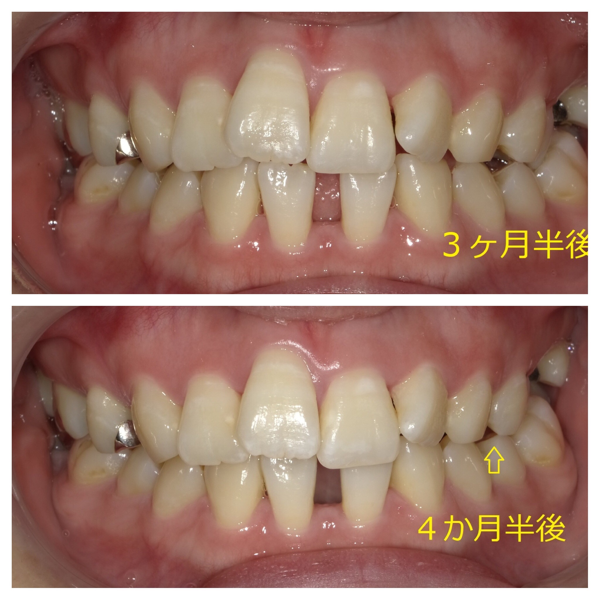 矢印の奥歯も下の歯を基準にすると後ろに下がってきているのが分かります。