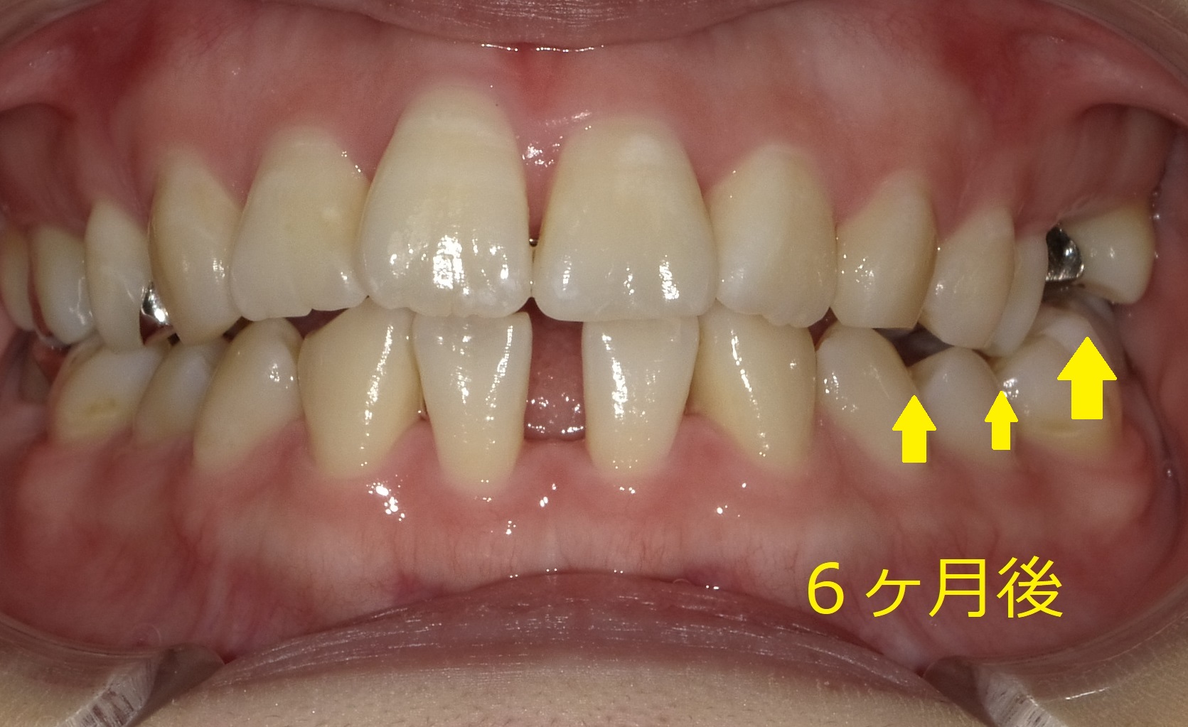 写真の矢印のところを見てお分かりの通り、噛みあわせがだいぶ崩れてきています。