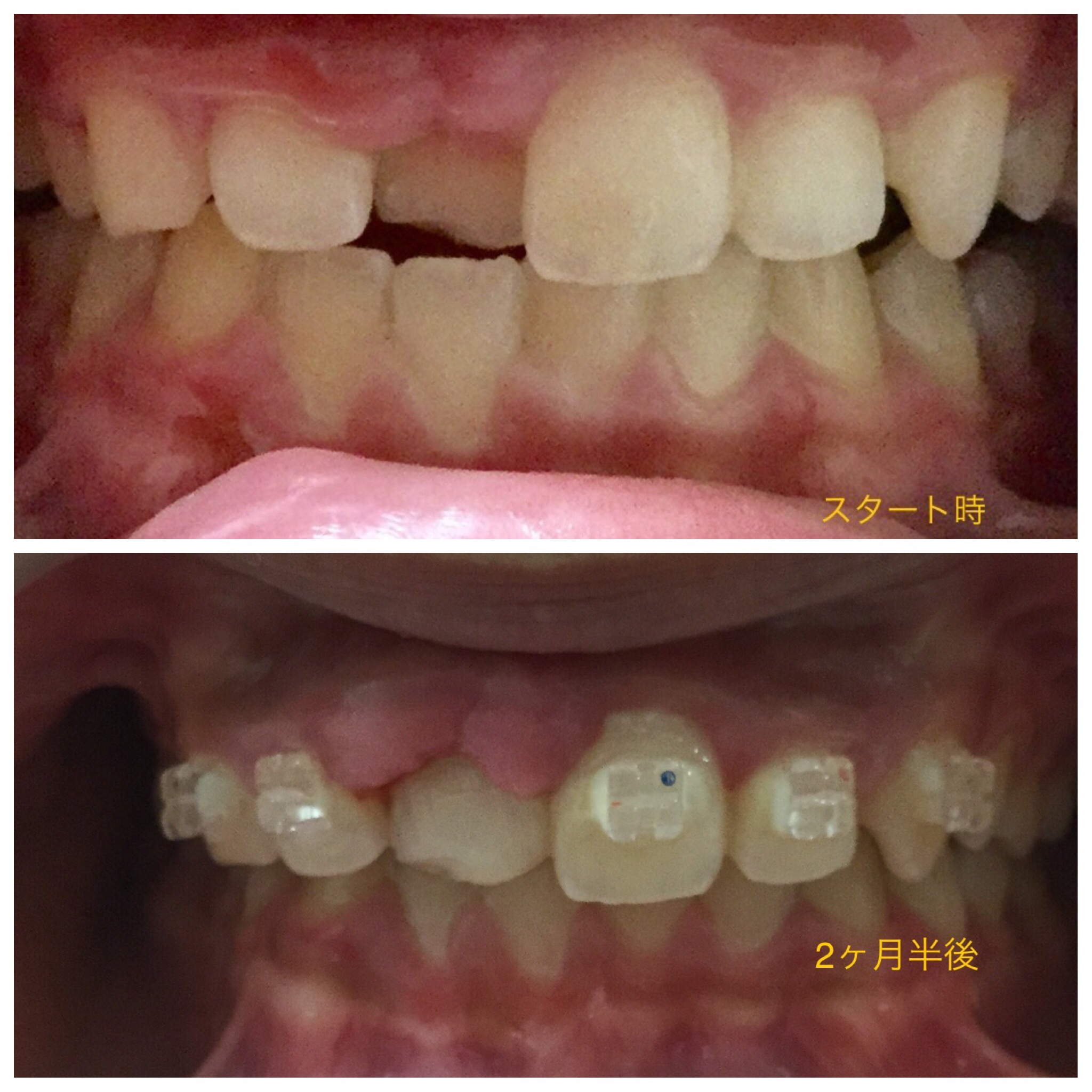 前回からまだ2週間しか経っていないのですが、さらに右上の前歯が出てきています。