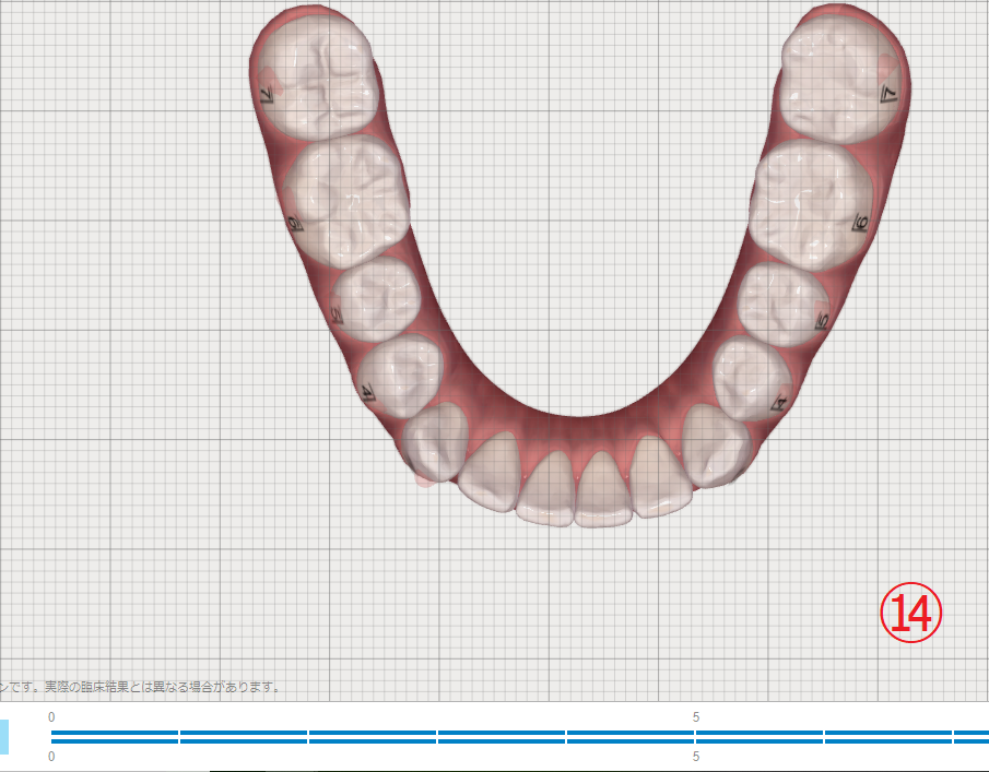 ライトパッケージでは14ステージ以内の治療になるため、14個のマウスピースでの移動となります。
