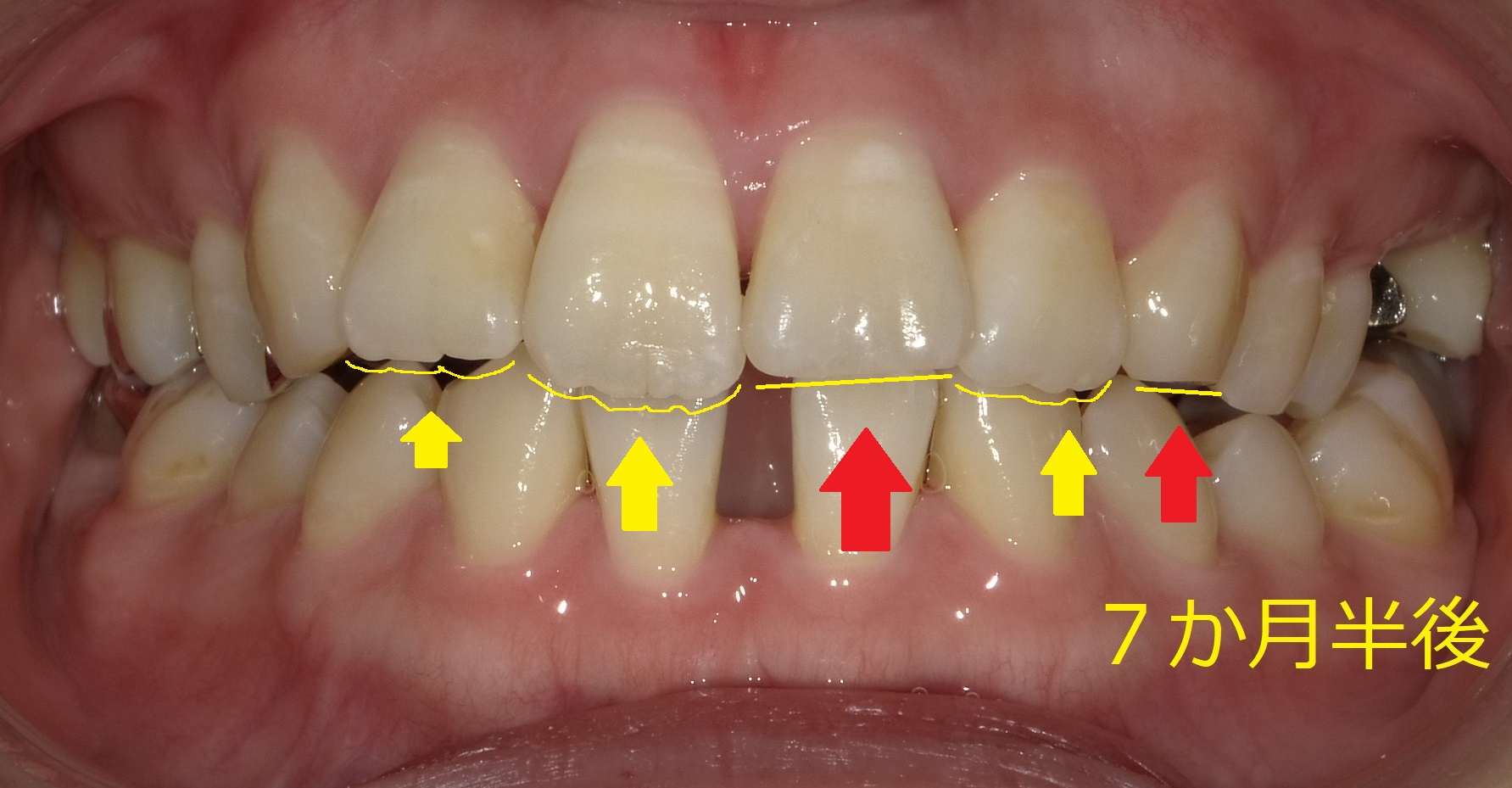 現時点で少し調整してもいいのですが、削り方によっては歯のカタチが分かりづらくなったり、削り過ぎると元には戻せないのでもう少し並べてから調整していきます。