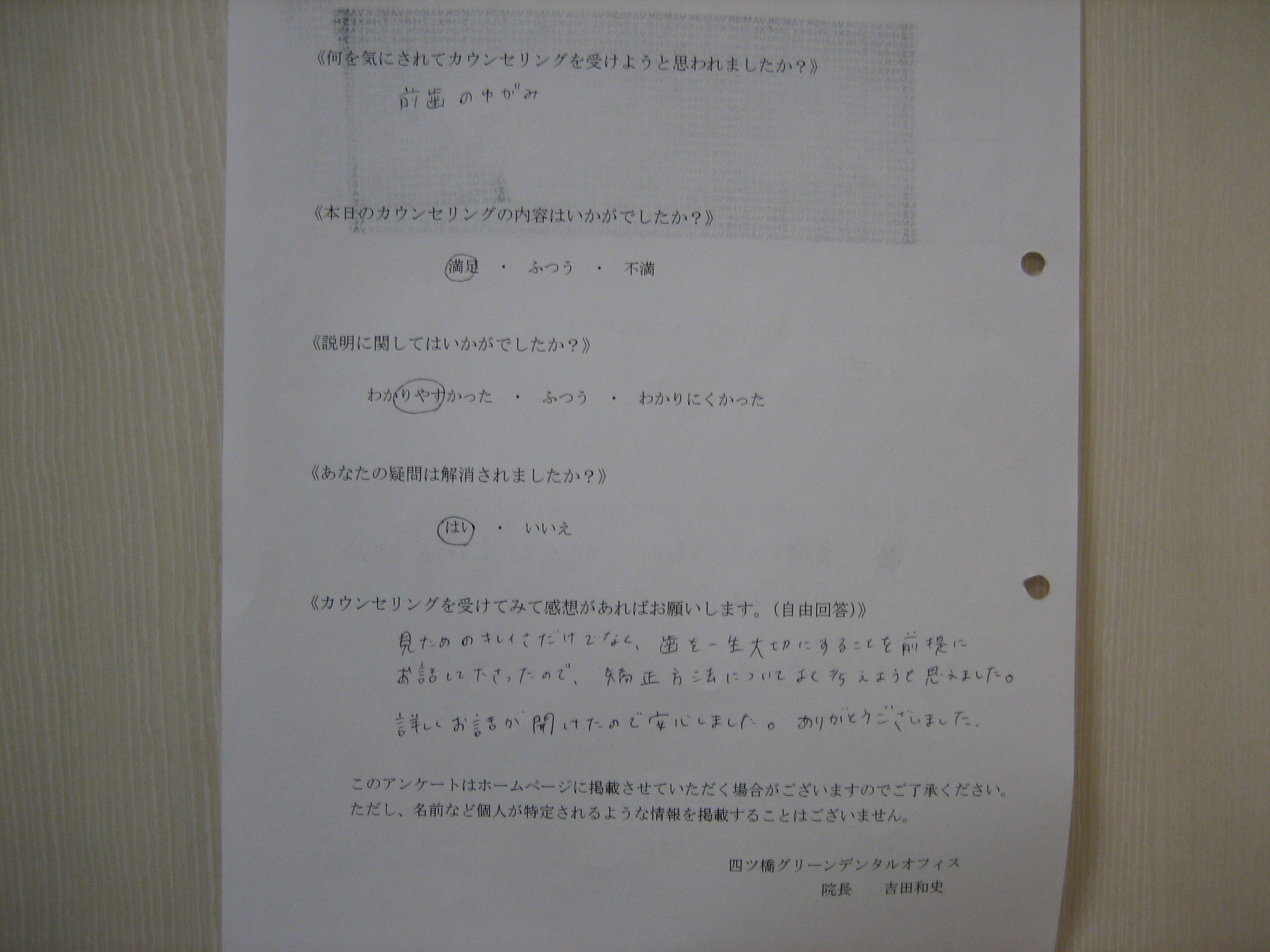カウンセリング後アンケート ⑧