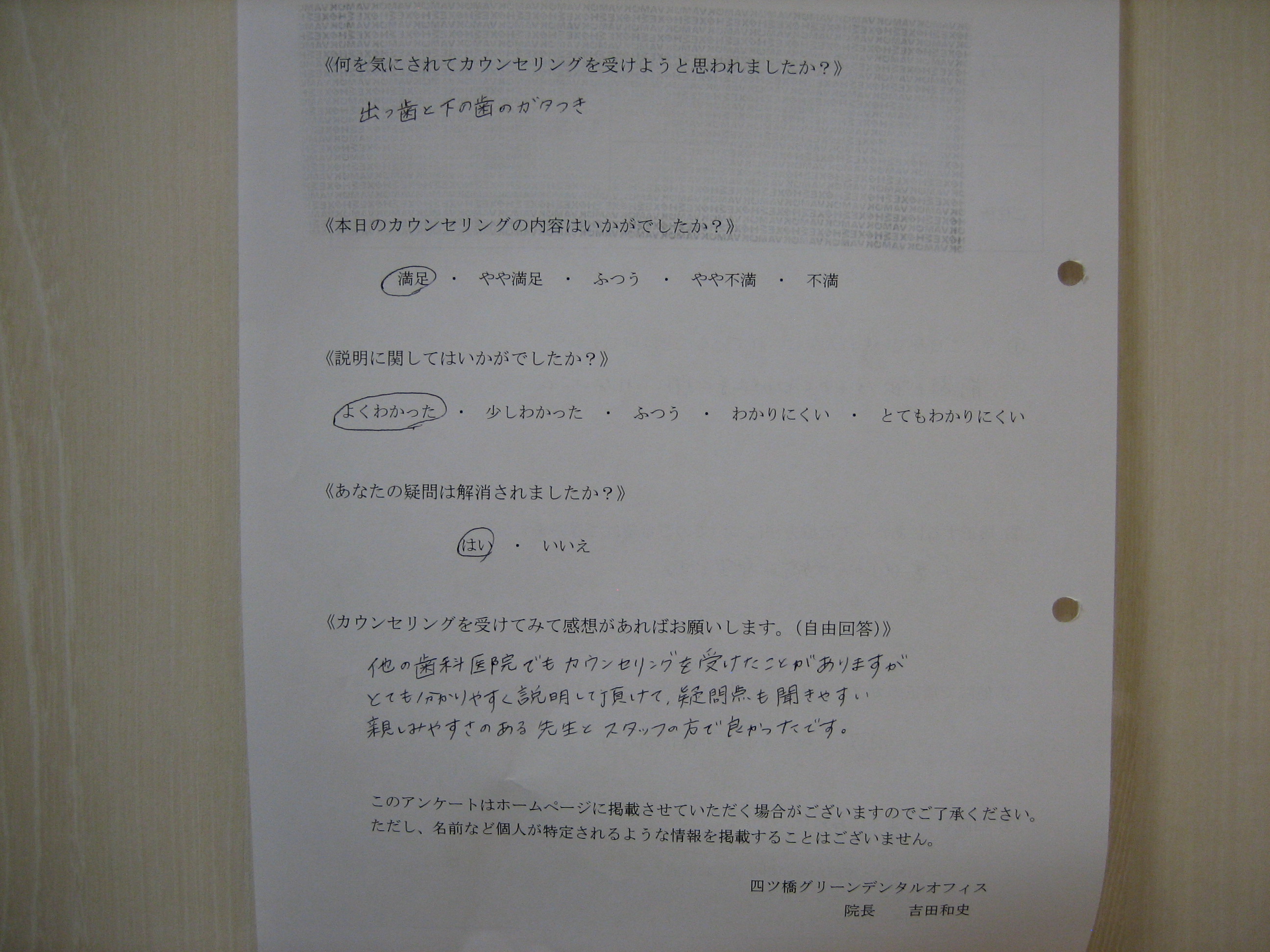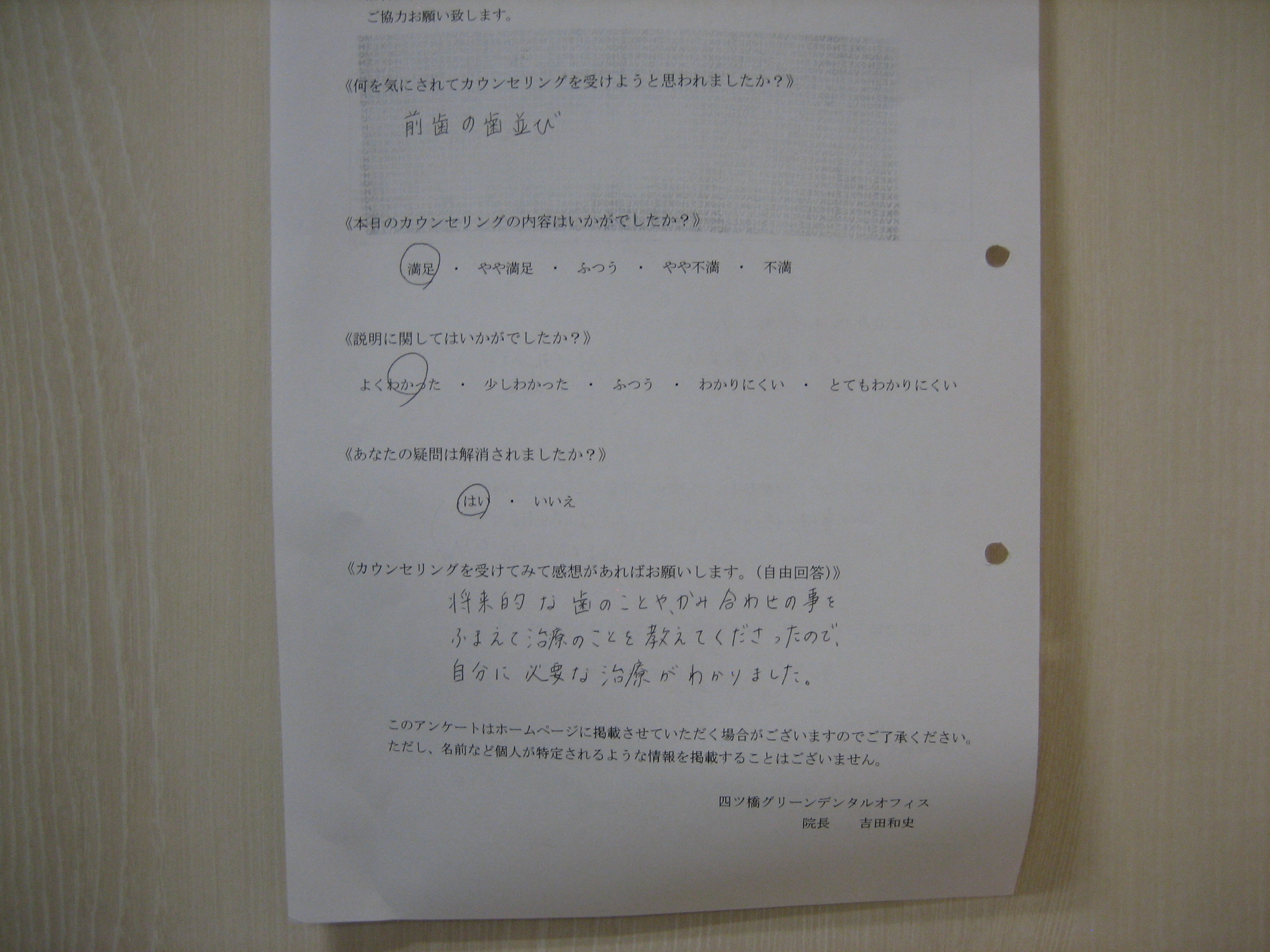 カウンセリング後アンケート ⑪|四ツ橋の歯医者「四ツ橋グリーンデンタルオフィス」|四ツ橋駅徒歩2分の医院ブログ