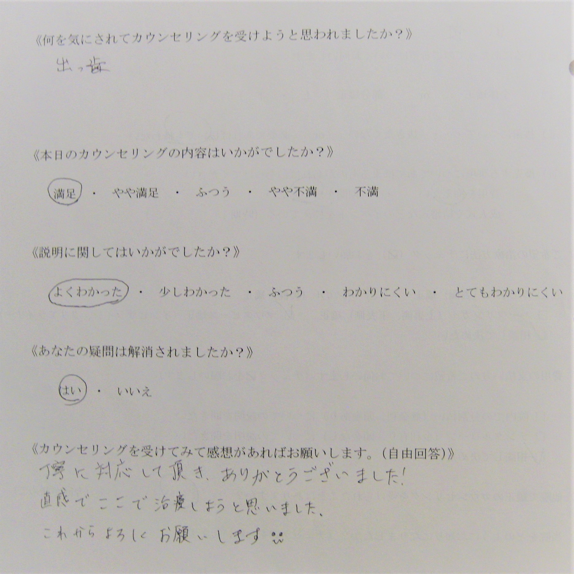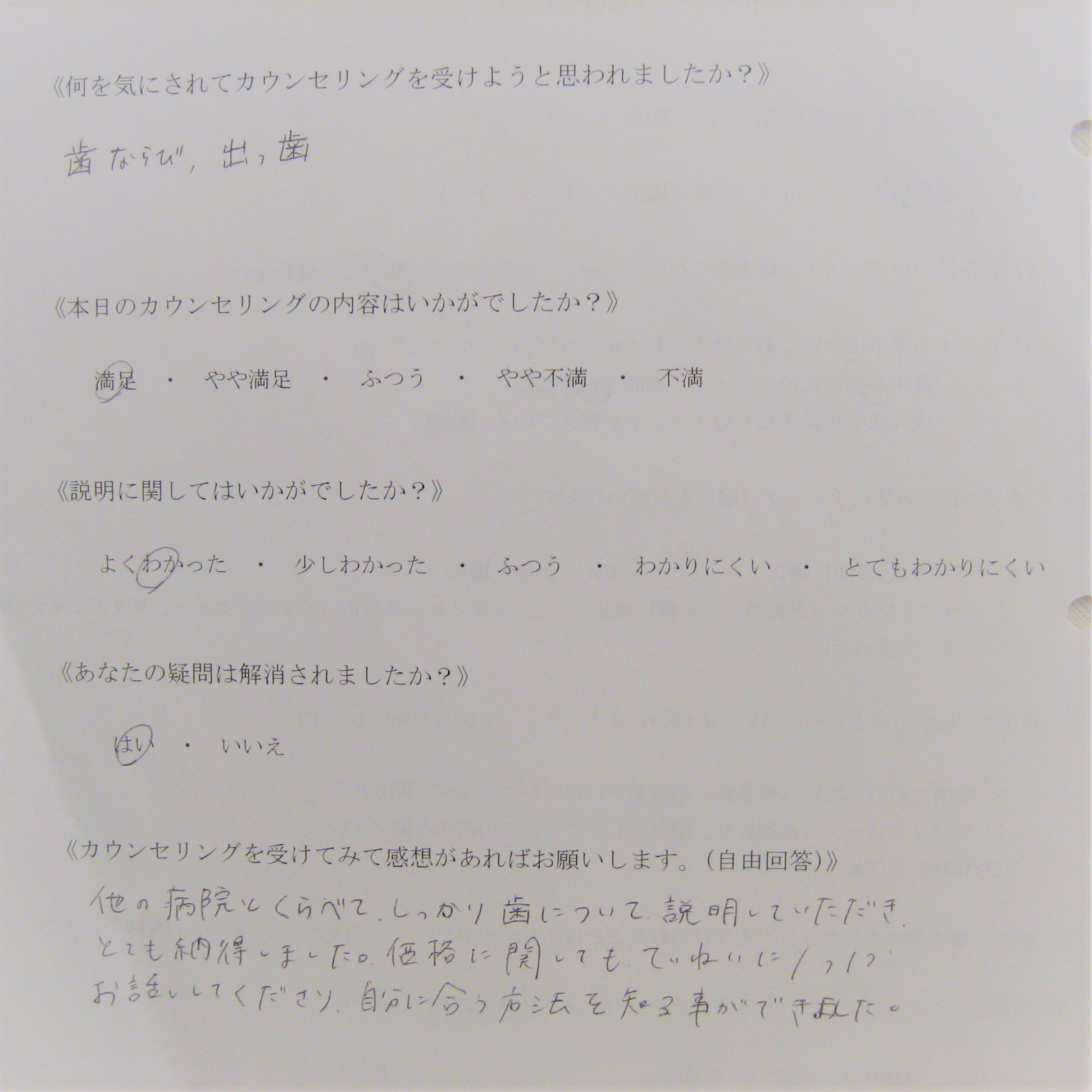 カウンセリング後アンケート 26|四ツ橋の歯医者「四ツ橋グリーンデンタルオフィス」|四ツ橋駅徒歩2分の医院ブログ