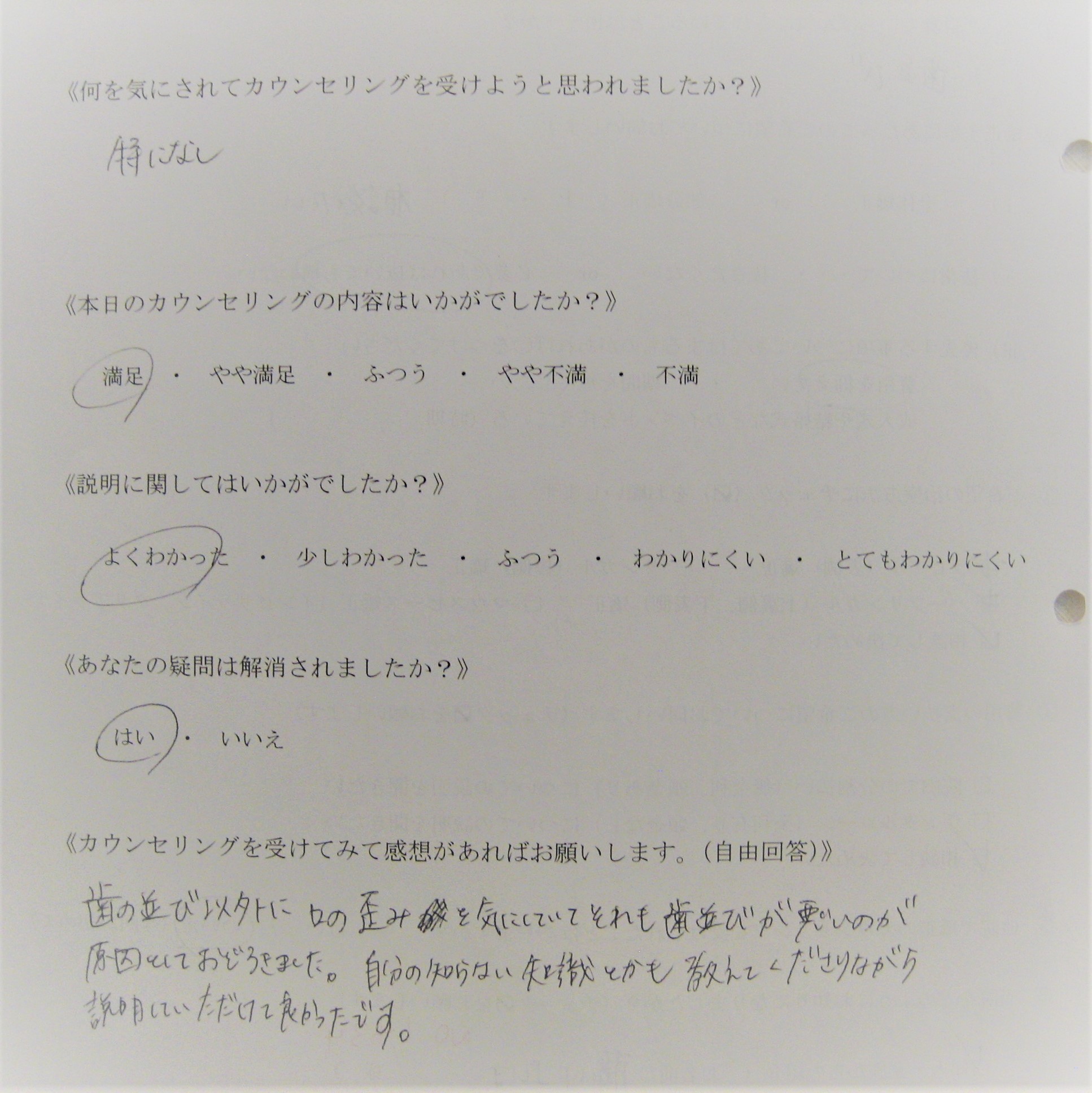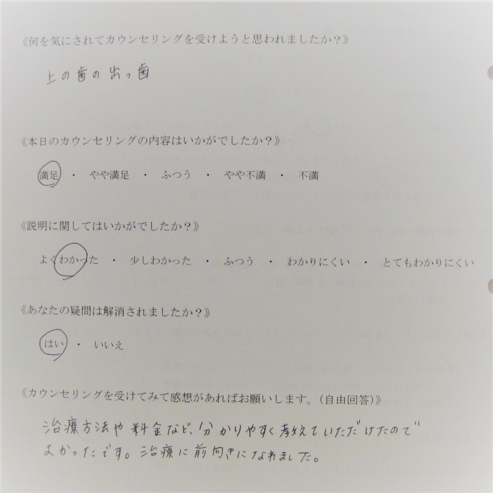 カウンセリング後アンケート 29|四ツ橋の歯医者「四ツ橋グリーンデンタルオフィス」|四ツ橋駅徒歩2分の医院ブログ