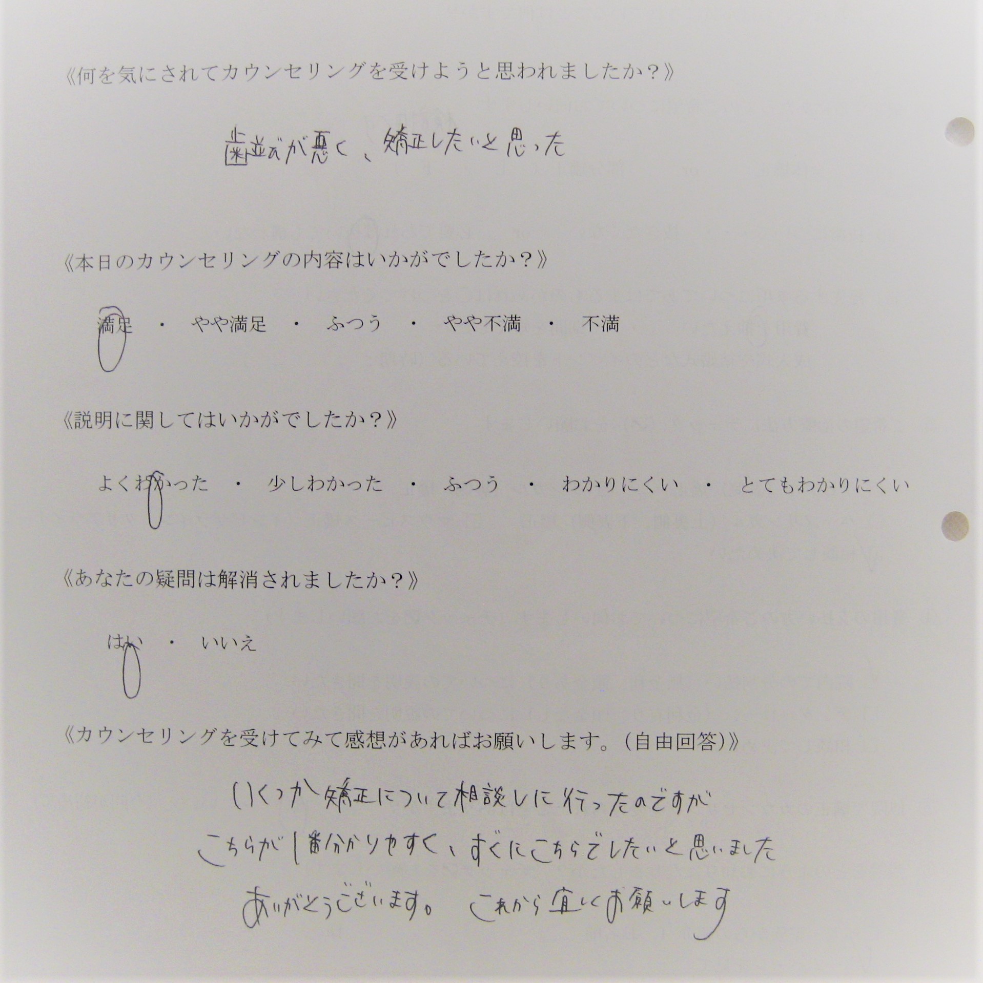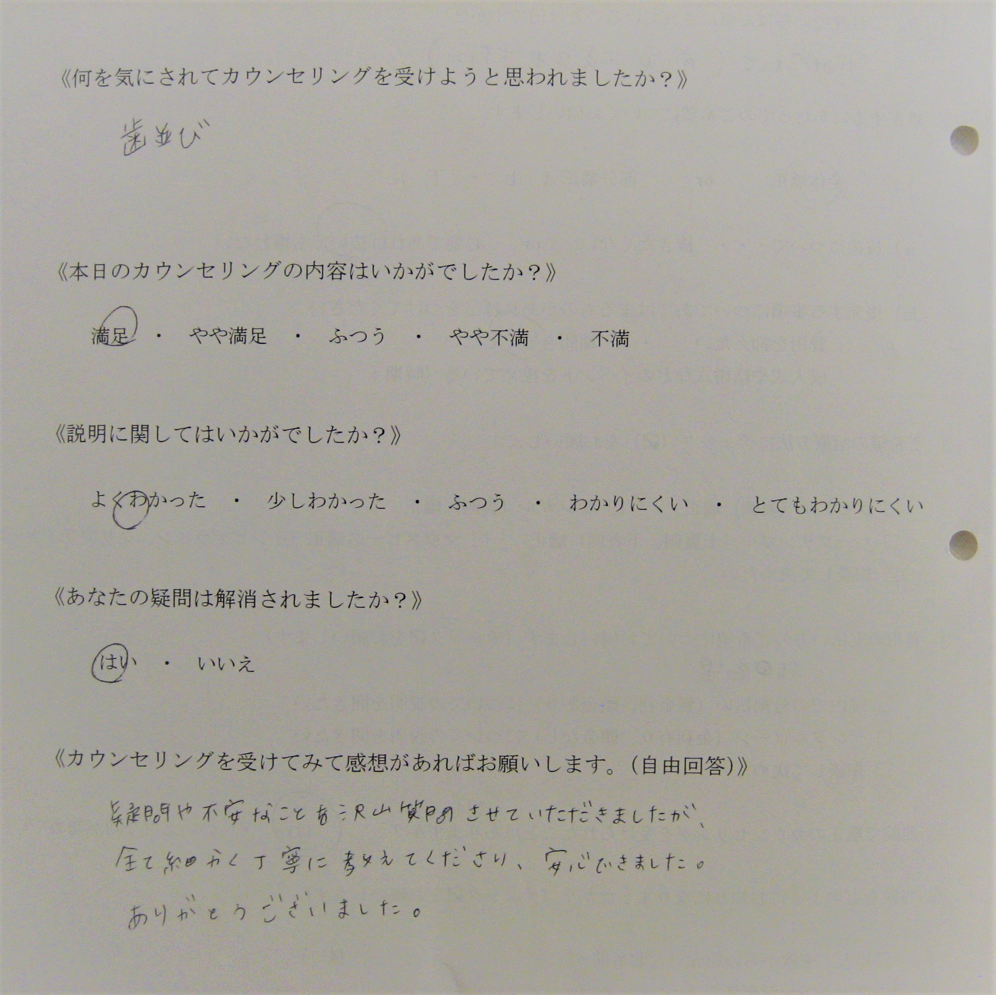 カウンセリング後アンケート 30|四ツ橋の歯医者「四ツ橋グリーンデンタルオフィス」|四ツ橋駅徒歩2分の医院ブログ