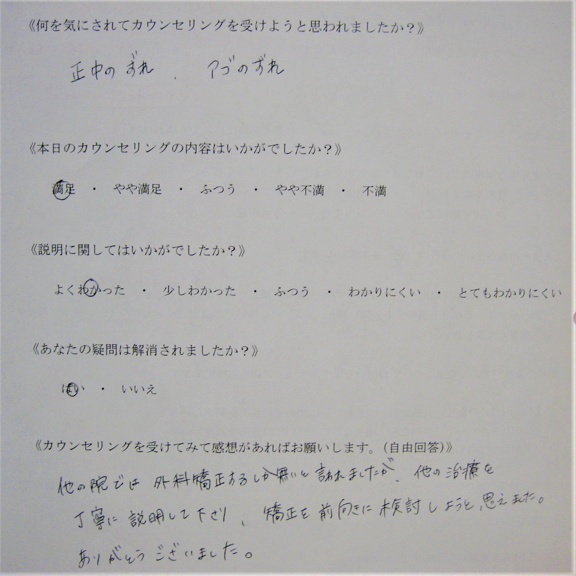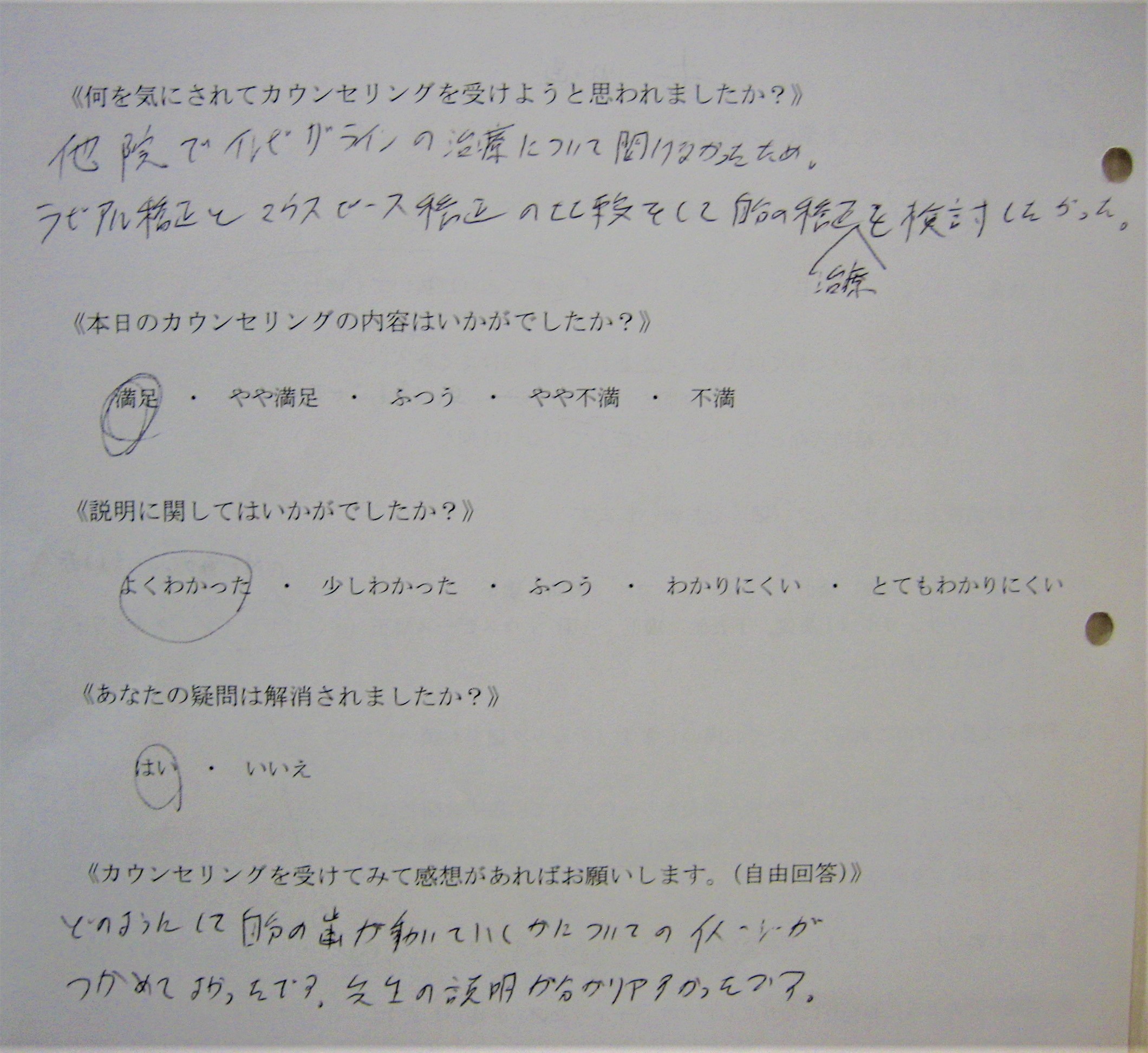 カウンセリング後アンケート 45|四ツ橋の歯医者「四ツ橋グリーンデンタルオフィス」|四ツ橋駅徒歩2分の医院ブログ