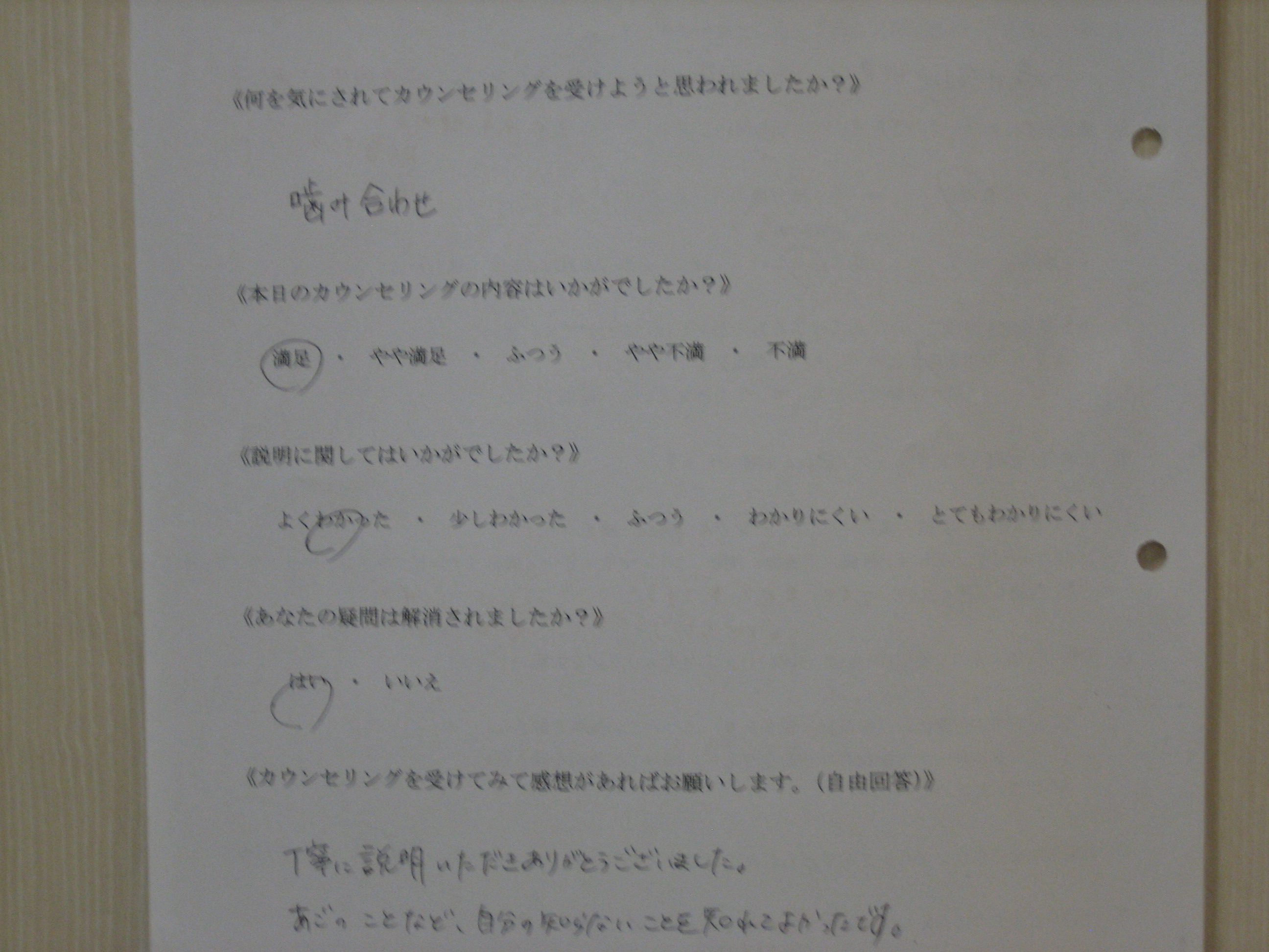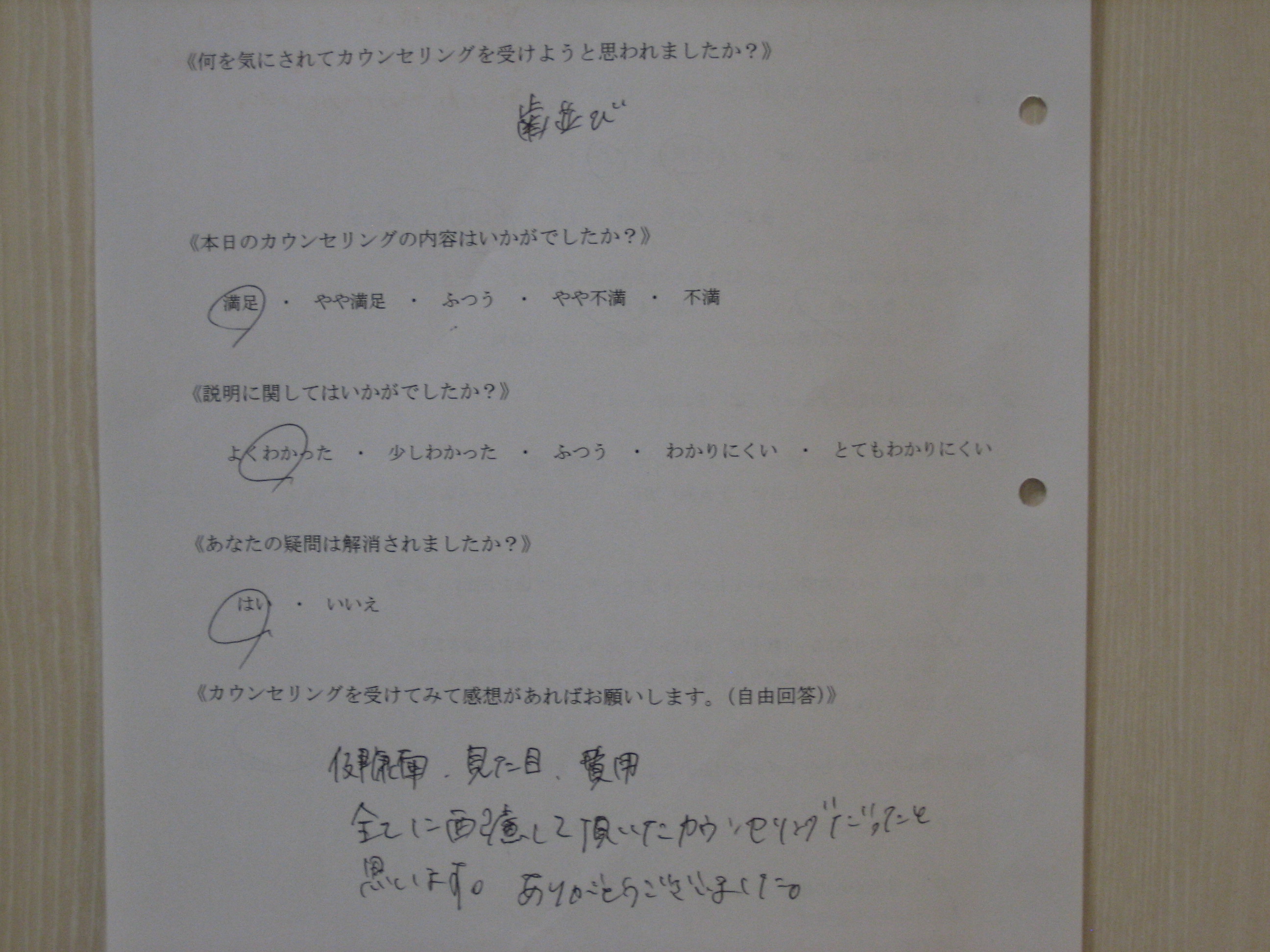 カウンセリング後アンケート 77|四ツ橋の歯医者「四ツ橋グリーンデンタルオフィス」|四ツ橋駅徒歩2分の医院ブログ