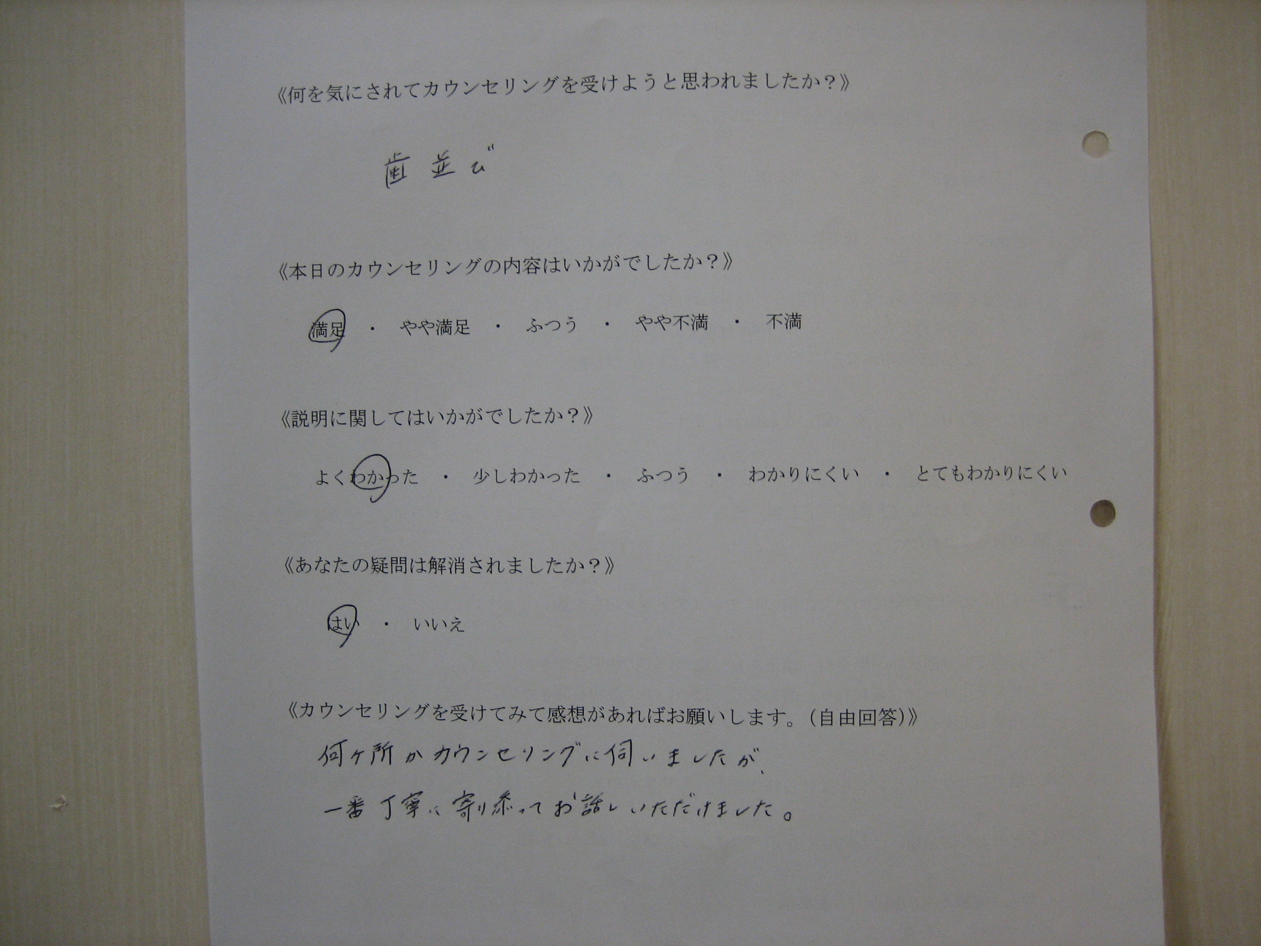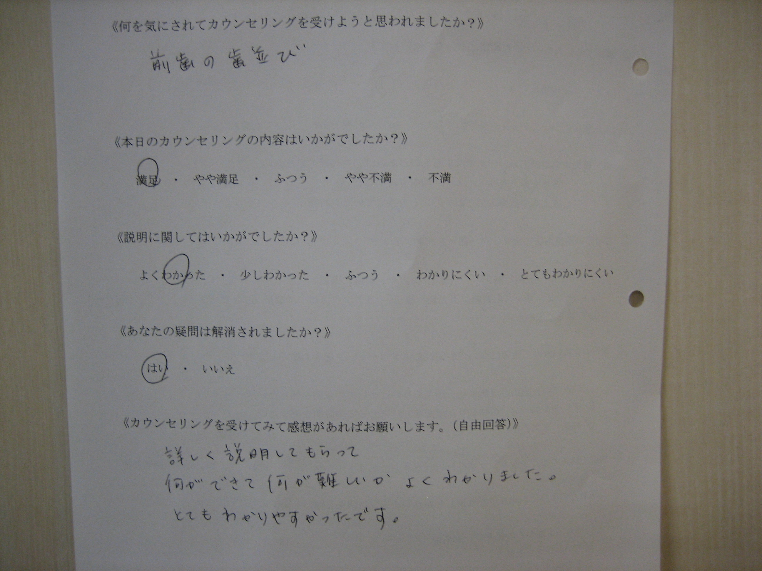 カウンセリング後アンケート 81|四ツ橋の歯医者「四ツ橋グリーンデンタルオフィス」|四ツ橋駅徒歩2分の医院ブログ