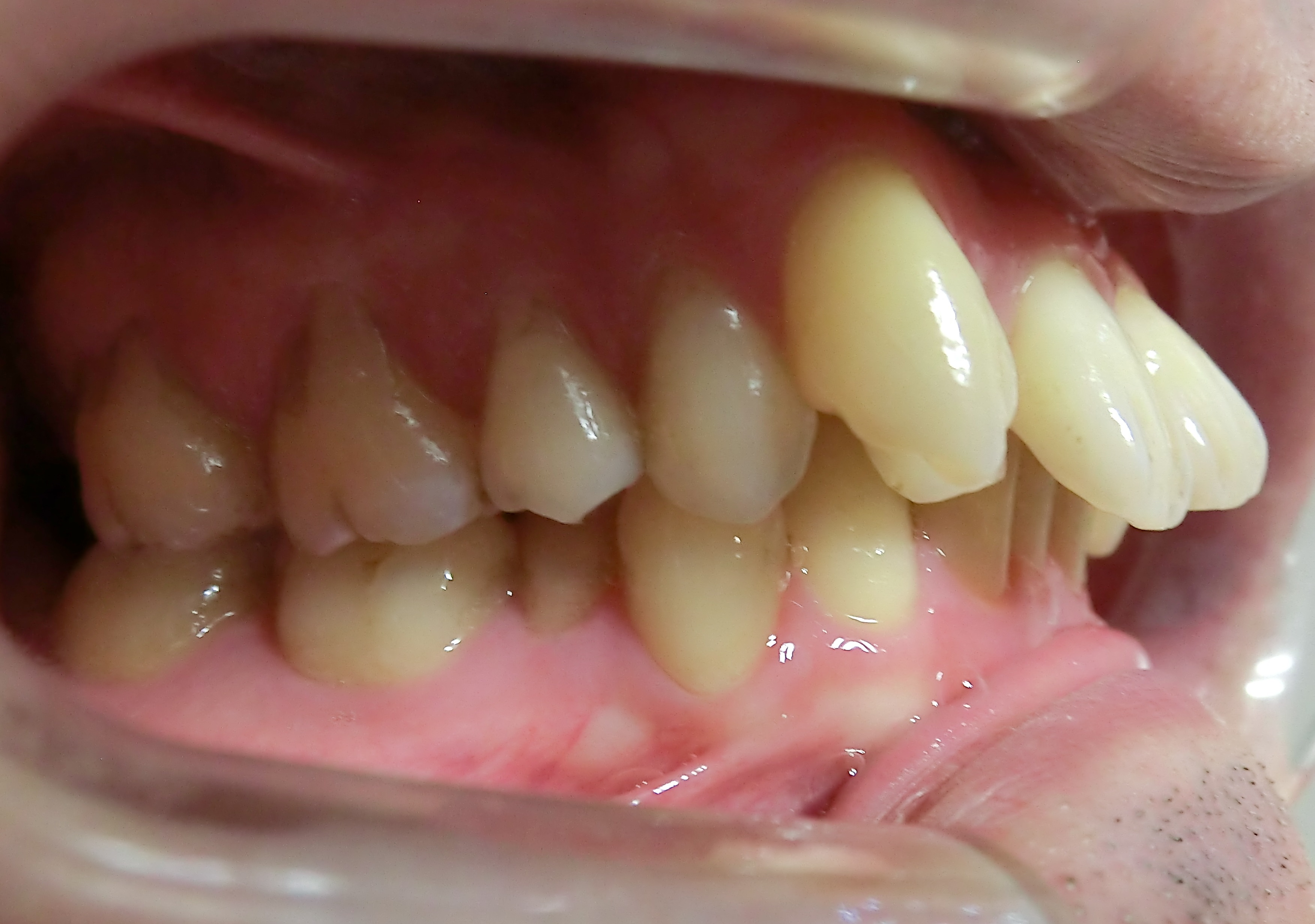 写真を見てわかるとおり、咬み合せが深く、前歯2本と右上犬歯が飛び出しています。