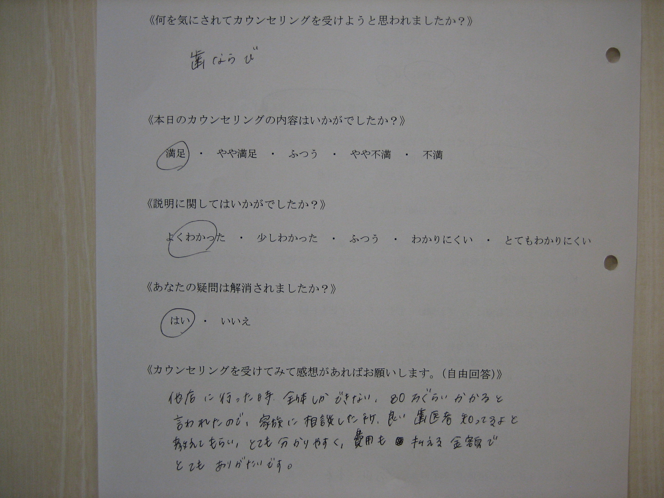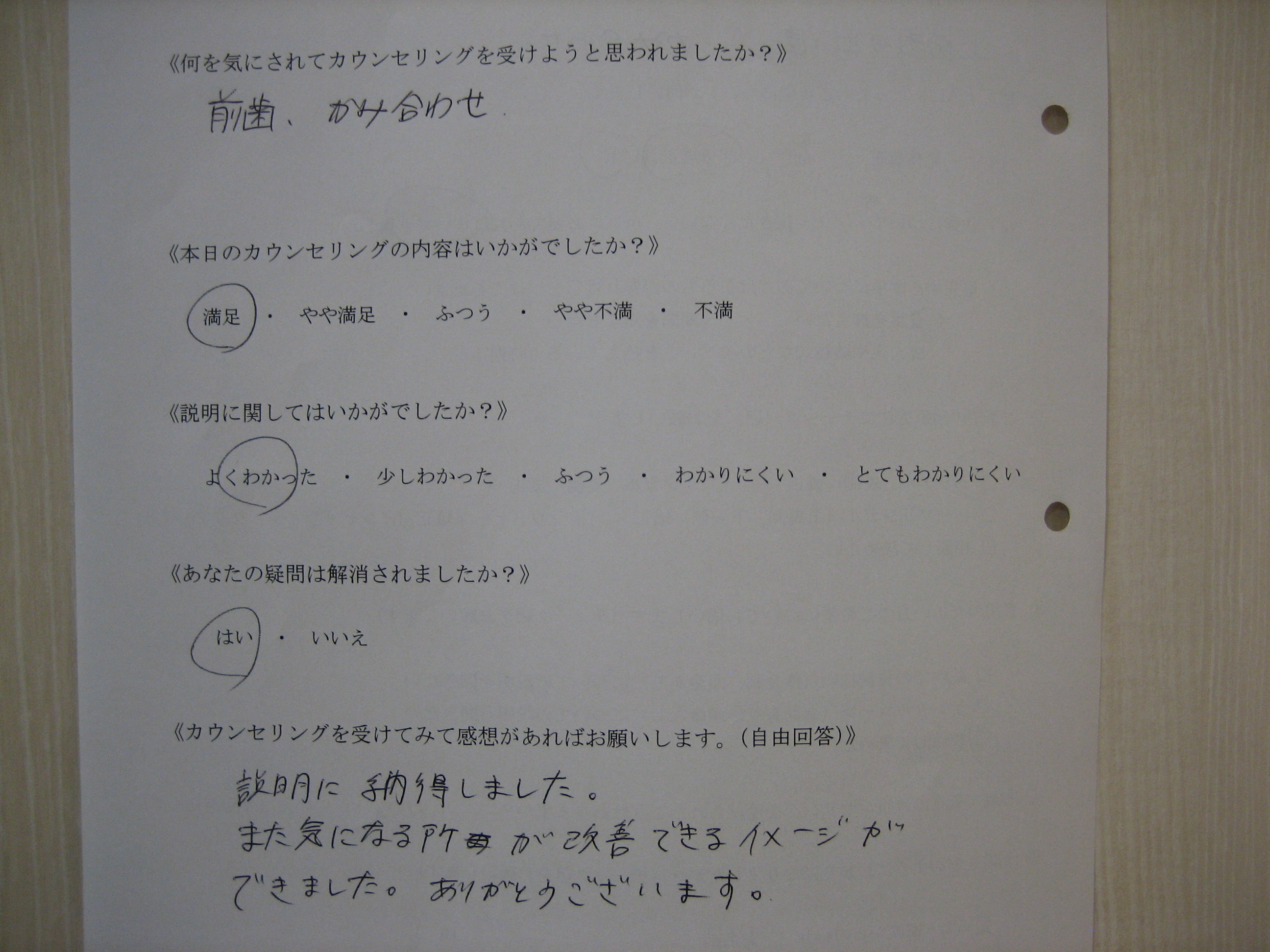 カウンセリング後アンケート 91