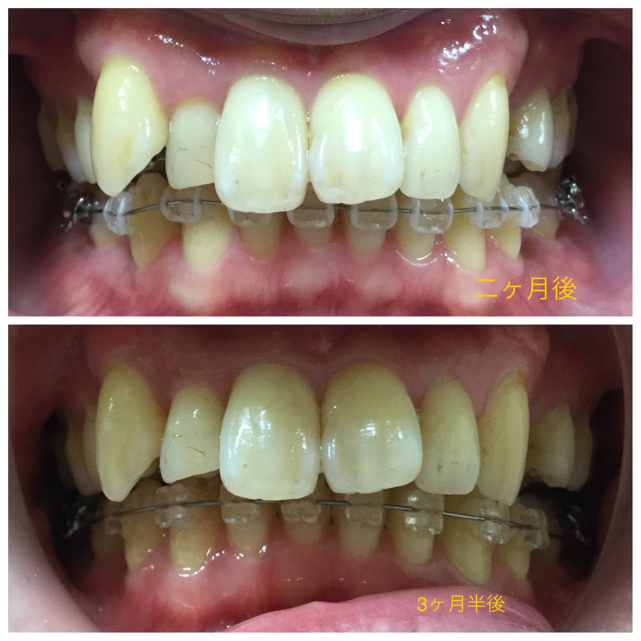 まだまだ並びとしては整ってきてる最中ですが、たった4ヶ月弱で前歯の並びが大きく変わってきているのが分かると思います。