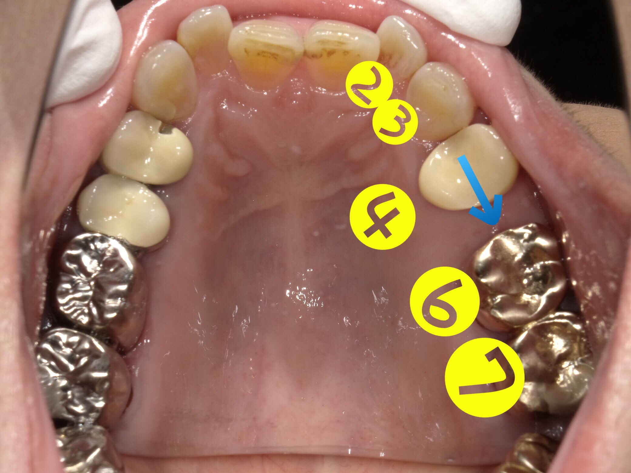 レントゲンで左上④番目の歯が神経がダメになっていたので治療して仮歯まで入れた状態の写真です。