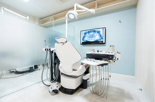 周囲の視線や会話を気にせず、リラックスして治療を受けていただける半個室タイプの診療室を完備しています。デリケートな歯並びのお悩みも、落ち着いた環境でじっくりとお話しいただけます。