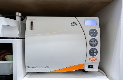 飽和蒸気によって内部を高温高圧の状態にし、治療で使用した器具の滅菌を行う機械です。ハンドピースなどの複雑な構造の器具でも、内部まで強力かつスピーディに滅菌することができます。