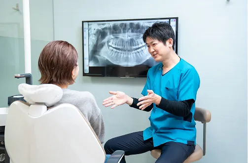 落ち着いた空間で丁寧に説明を行い、治療内容や進行状況についてもしっかり共有します。患者さんがリラックスした状態で、納得しながら治療を受けられるよう配慮しています。