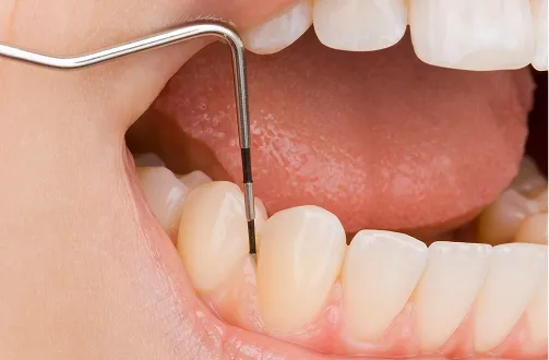 歯周病の場合、虫歯のようにズキズキと痛みを感じることはありませんが、患者さまのなかには「歯がしみる」といった症状を虫歯だと思って受診したものの、実は歯周病だったというケースも珍しくありません。こうした状況では、歯周病がかなり進行して顎の骨が溶かされている可能性が高いといえます。