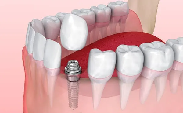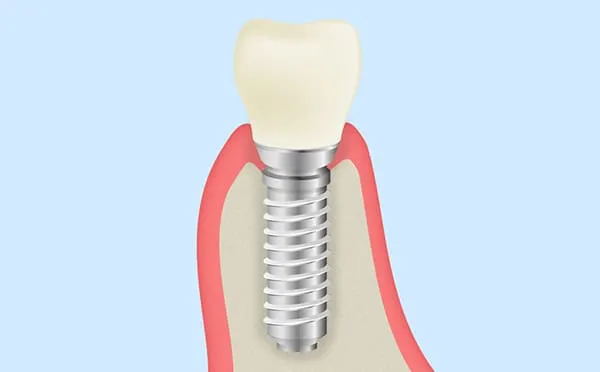 インプラントは顎の骨に直接固定する治療法で、天然歯に近い感覚でしっかり噛めることが特長です。ブリッジのように周囲の健康な歯を削る必要がないため、残っている歯への負担を抑えられる可能性があります。