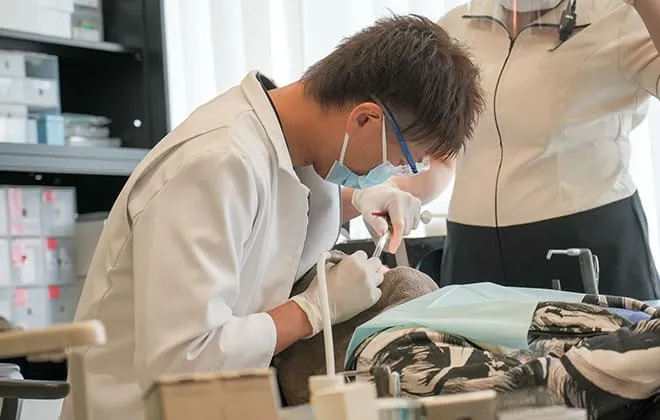 治療を行う場合は、事前のシミュレーションに基づいてインプラント体を顎の骨に埋入します。身体への負担をできるだけ抑えながら、正確な位置に埋め込むことを重視します。処置時間や方法は症例によって異なります。