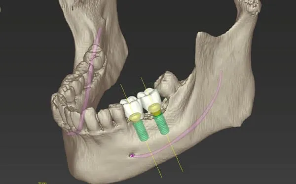 歯科用CTの撮影データをもとに、コンピュータ上で事前に治療計画を立案します。神経や血管の位置、骨の厚みや形状を立体的に把握し、リスクを可能な限り抑えた埋入位置を慎重に検討します。