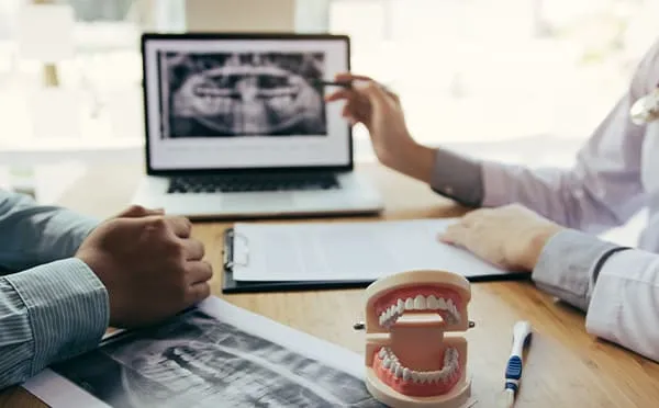レントゲン撮影を行い、顎の骨の状態や周囲の歯の状況を確認します。必要に応じて歯科用CTを撮影し、骨の厚みや高さ、神経や血管の位置を立体的に把握します。これらの検査は、安全性を高め、無理のない治療計画を立てるために欠かせないものです。