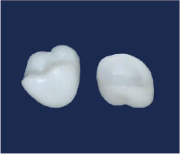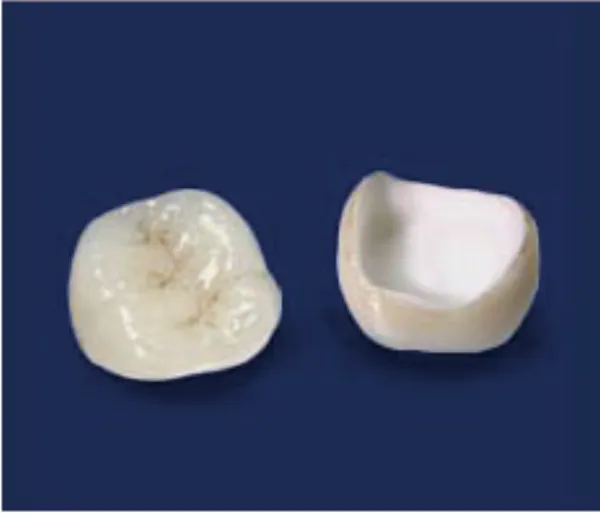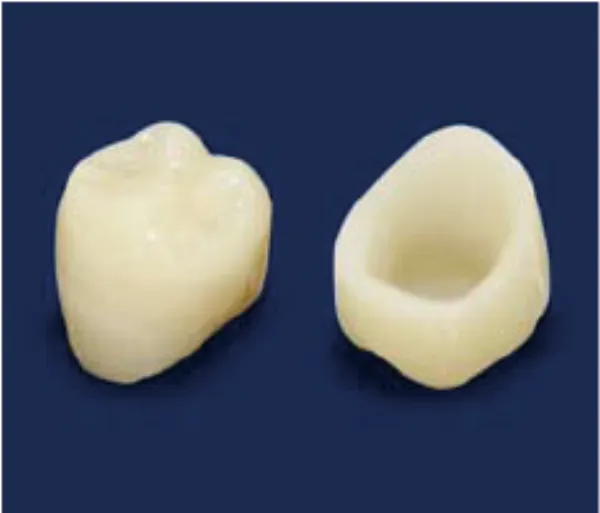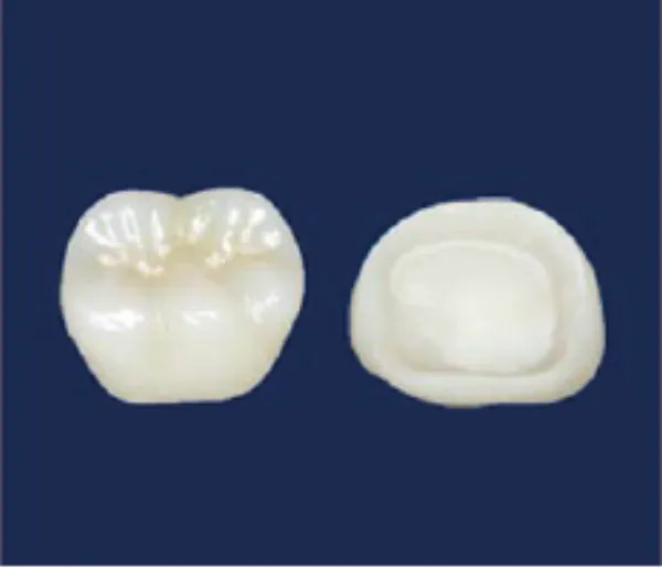 | ジルコニアアバットメント (アバットメントと呼ばれる通常金属の部品を白いジルコニアで作る場合) |